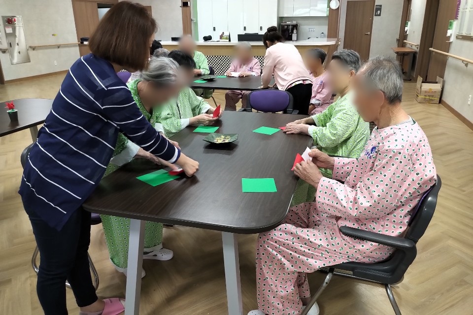 종이를 접는것을 힘들어하는 어르신들도 계셨지만